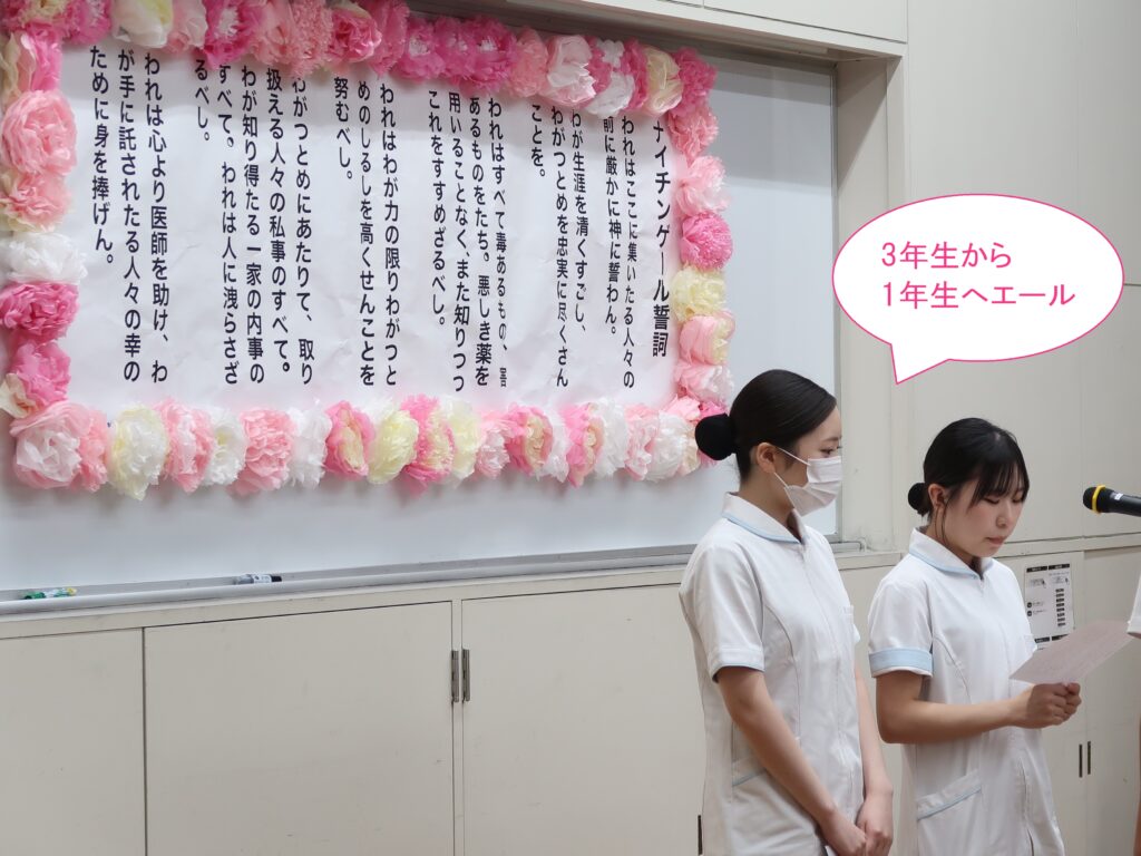 1年生 あじさい式 9月17日(水)あじさい式が執り行われました。 自分がどんな看護師になりたいか、3年生が見守る中みんなの前で宣誓しました。 これから3年間、看護師になる為みんなで切磋琢磨し頑張ってほしいと思います。 一覧へ戻る